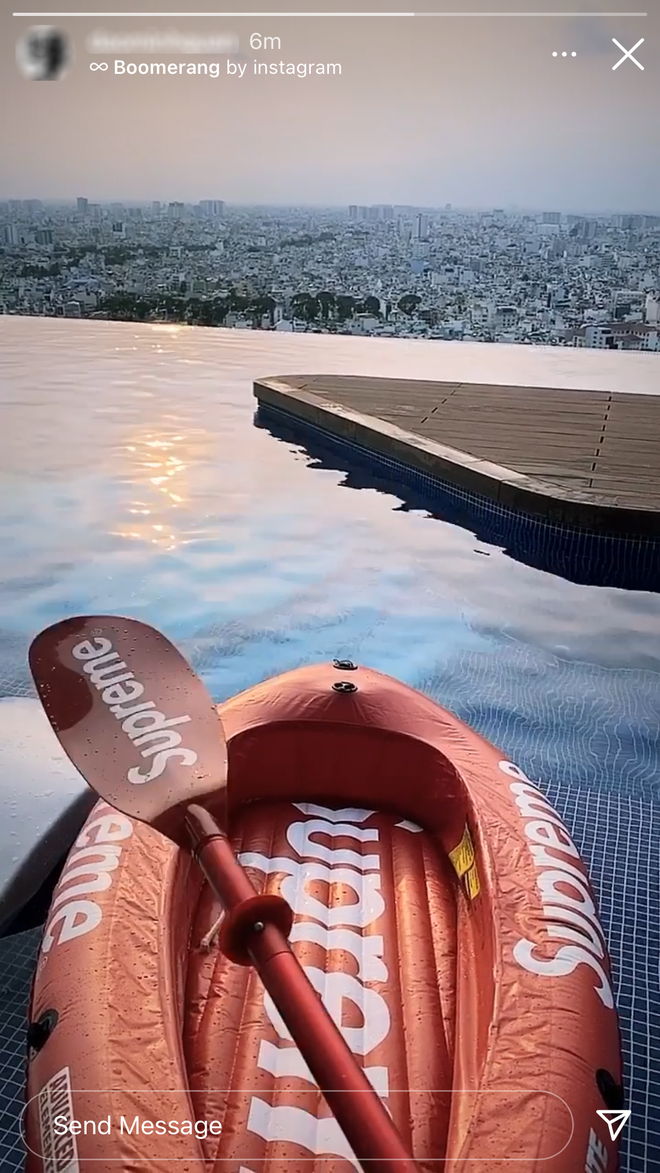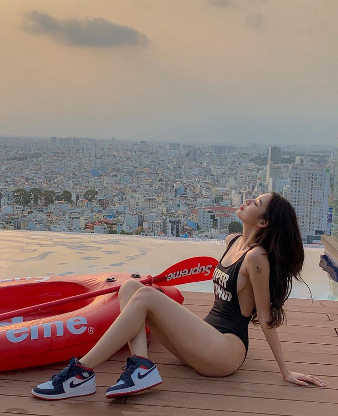Địa điểm mới nhất cặp đôi này vừa thêm vào danh sách check-in cùng nhau là một hồ bơi vô cực nằm trên tầng thượng một tòa nhà 35 tầng thuộc quận 7 TP.HCM. Hồ bơi có view cực xịn bao quát sông Sài Gòn và khu trung tâm thành phố.