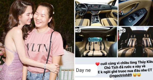 Cụ thể chiếc xế hiệu mà Ngọc Trinh đang đi chỉ có 4 chỗ ngồi. Ngọc Trinh ngồi ghế sau có thể duỗi thẳng lưng thoải mái, còn Thuý Kiều phải ngồi cạnh tài xế để thi thoảng còn quay story này nọ cho "chủ tịch". Tuy nhiên, ngồi phía trước thì cũng có bất tiện nhẹ là... không duỗi thẳng lưng/chân được. Vậy nên Thuý Kiều đã vòi vĩnh nhẹ đòi Ngọc Trinh đổi xe, thế là được đáp ứng luôn và ngay chăng?