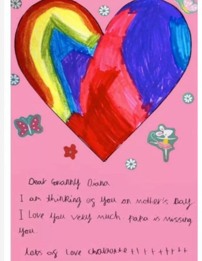 Những tấm thiệp được trang trí bằng trái tim, nụ hôn và hình dán đáng yêu. Đặc biệt, thiệp của Công chúa Charlotte còn ghi: "Bố cháu đang nhớ bà nhiều lắm", khiến nhiều người hâm mộ hoàng gia vô cùng xúc động.