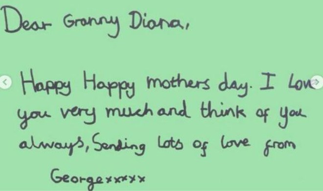 Cụ thể, trong ngày của Mẹ tại nước Anh mới đây, trang Instagram hoàng gia đăng tải 3 bức ảnh vẽ tay của 3 người con nhà Cambridge, nội dung không phải dành cho Công nương Kate hay Nữ hoàng Anh, �mà là gửi những lời yêu thương tới bà nội đã mất từ nhiều năm trước - người mà chúng chưa từng được gặp mặt.