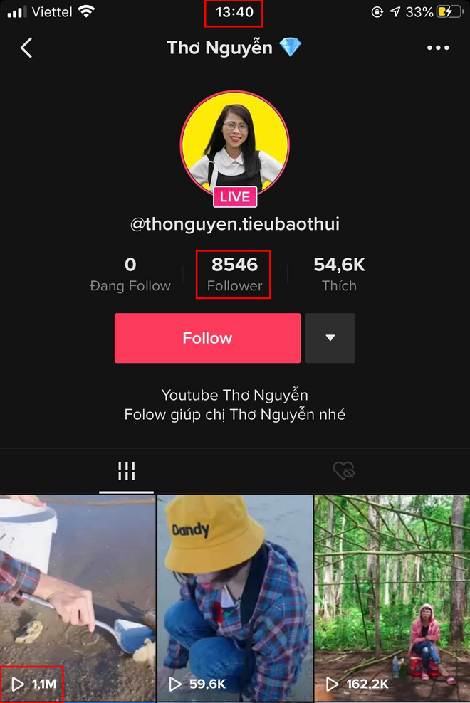 Lượng followers tăng đột biến trên một tài khoản có tên @thonguyen.tieubaothui, tài khoản này còn tổ chức livestream để câu tương tác