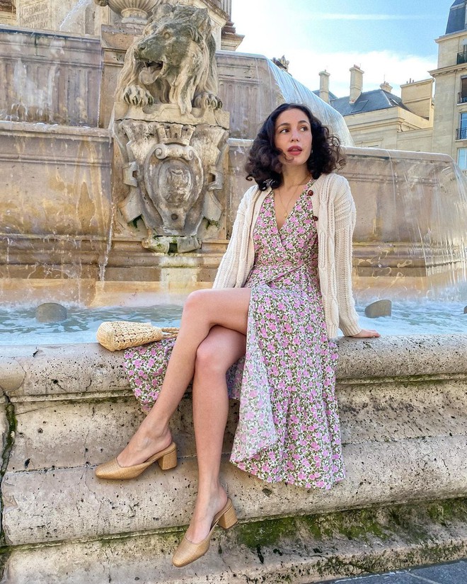 Lần tới khi chọn váy dài, hãy chọn những kiểu váy đắp tà hoặc xẻ tà như các quý cô Pháp này nhé. Trong khi chi tiết đắp tà giúp che bụng hoàn hảo thì những chiếc váy xẻ tà, để lộ một phần chân sẽ vô cùng quyến rũ và thu hút, đồng thời khiến chân bạn dài miên man. Để tăng hiệu ứng dài chân, những đôi mule mũi nhọn sẽ là bạn đồng hành lý tưởng đấy.