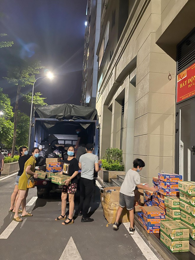 Chiều 24/5, tất cả bánh, sữa và nhu yếu phẩm được nhóm chuyển đến Bắc Giang, phát tặng những công nhân trong vùng phong toả.