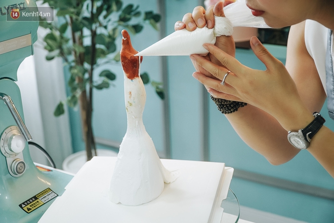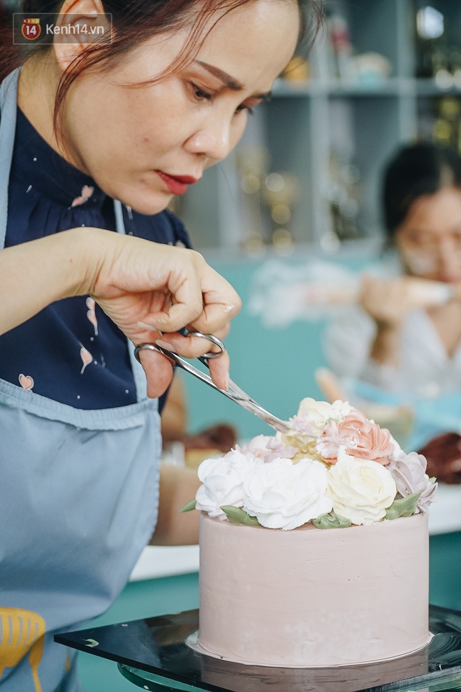 Để làm một chiếc bánh kem tươi nghệ thuật, cô giáo cho biết, người có kinh nghiệm sẽ mất khoảng 1 tiếng; còn những người mới nhập môn cần từ 3 - 4 giờ. Với chị, làm bánh giúp tôi luyện tính kiên nhẫn, sự bình tĩnh và tỉ mẩn.