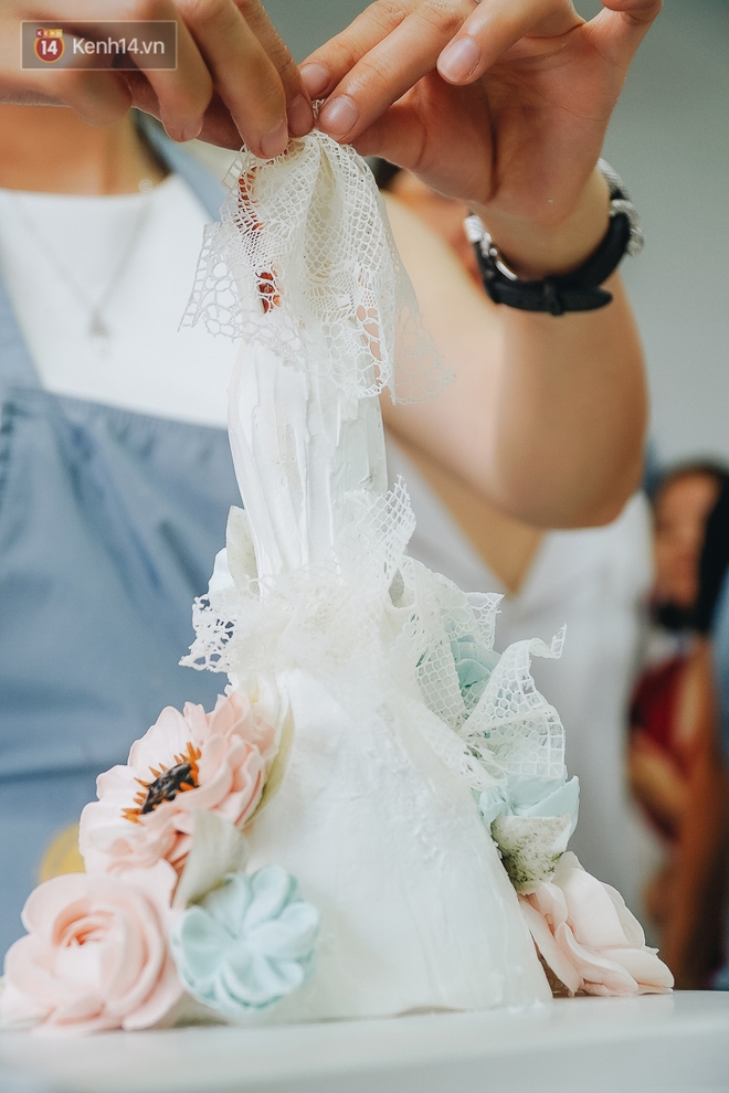 Cô giáo trực tiếp hướng dẫn học viên cách làm chiếc bánh kem tạo hình cô dâu rất độc đáo
