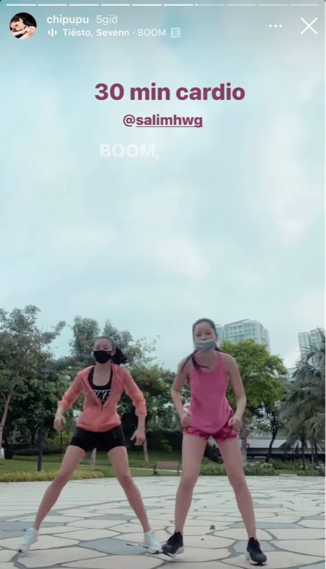 Chi Pu cũng tham gia vào buổi tập này với Salim. Trông hai cô nàng chăm chỉ tập tành thế kia, bảo sao vóc dáng lúc nào cũng okela hết phần thiên hạ.