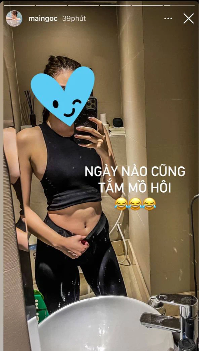 MC thời tiết Mai Ngọc khoe dáng trước gương sau màn tập tành ra mồ hôi như tắm của mình.