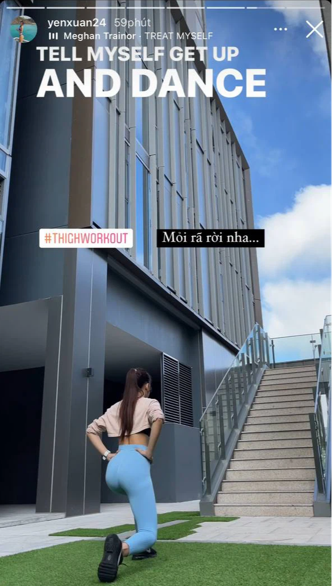 Không hổ danh là hot girl phòng tập, bất cứ lúc nào cũng thấy Yến Xuân tập tành chăm chỉ. Thế nên cô nàng lúc nào trông cũng xinh với số đo 3 vòng chuẩn không cần chỉnh.