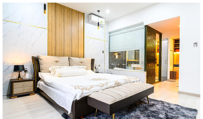 Phòng ngủ của vợ chồng chị nhìn ra ban công