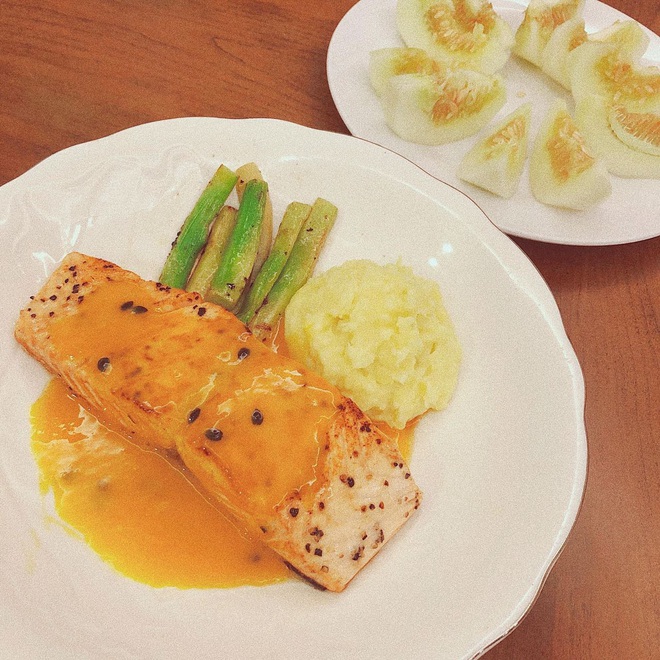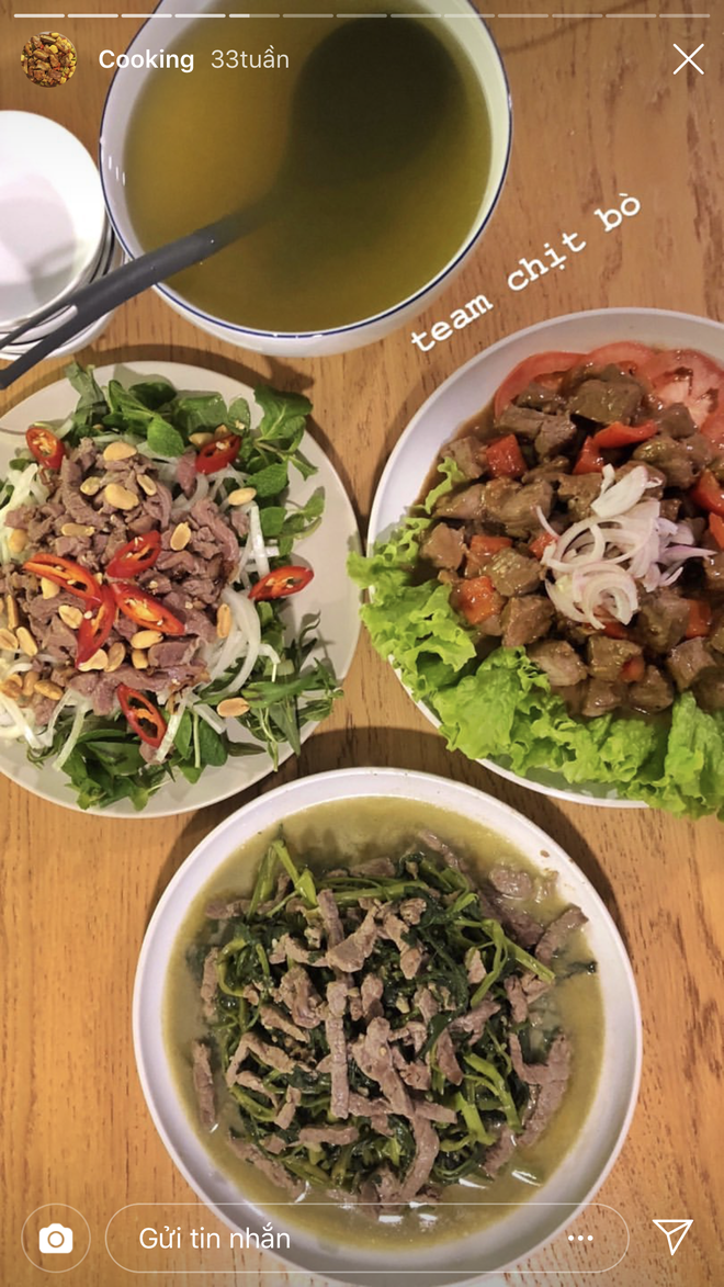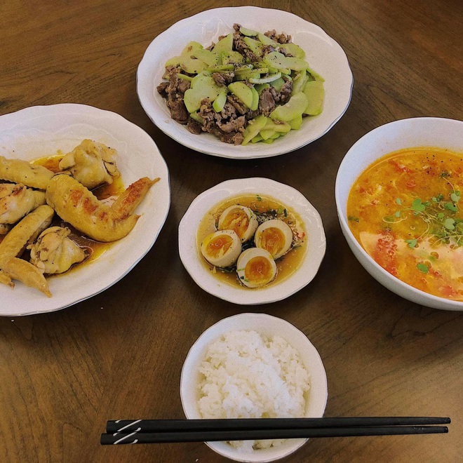 Bình thường, cô nàng thường ăn uống theo eat clean để giữ dáng nhưng khi cần thì vẫn có liền một mâm cơm đủ 3 món nhìn là muốn sà vào ăn ngay