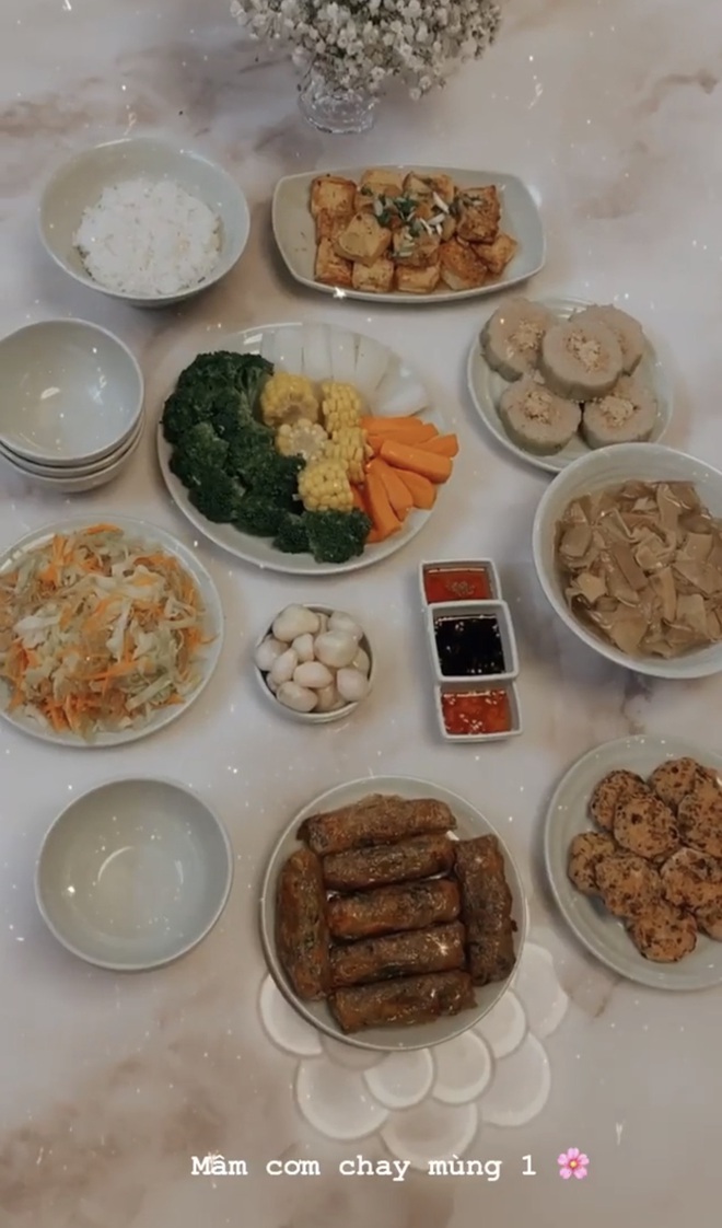 Là người ăn chay trường, các mâm cơm của Helly Tống cũng theo trường phái này