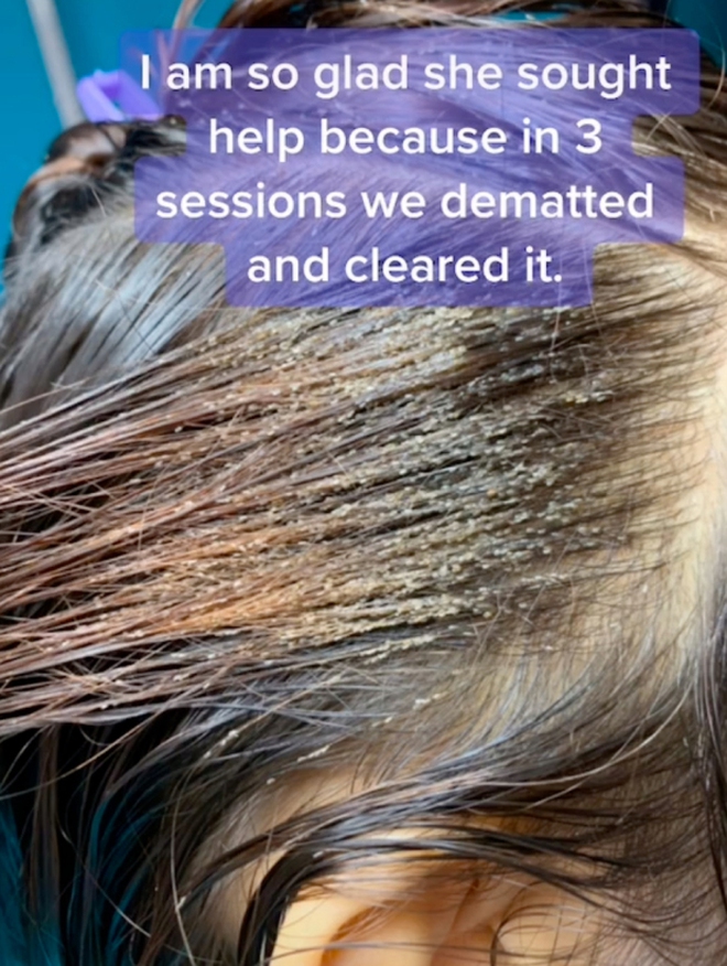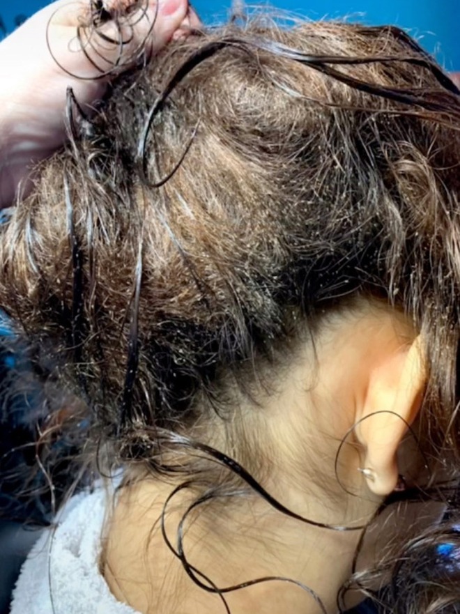 Chính chuyên gia cũng phải sốc nặng khi xử lý tình trạng cho nữ khách hàng kể trên. Cô ghi lại hết những hình ảnh trước khi trị liệu cho khách. Chuyên gia cho hay, khi động đến bầy chấy, chúng sẽ co cụm lại một đám với nhau. Nhìn cảnh tượng đó, nhiều người cho rằng chẳng còn cách nào khác ngoài cạo trọc đi để loại bỏ đám chấy đã sinh sôi quá mạnh kia.