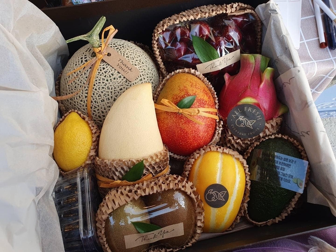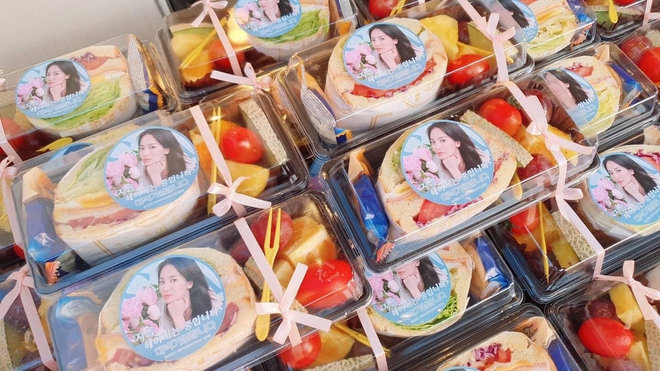 ... hoa quả, bánh ngọt, salad thịnh soạn như nhà hàng. Điều này khiến dân tình thắc mắc người tặng là ai