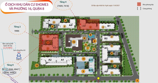 Cụ thể, chung cư Ehome 3 có quy mô 14 block và mỗi block cao 9 tầng. Ngày 30/5/2021, quận Bình Tân ghi nhận ca bệnh Covid-19 đầu tiên tại chung cư Ehome 3 là BN 7409 sống tại tầng 4, block A6.