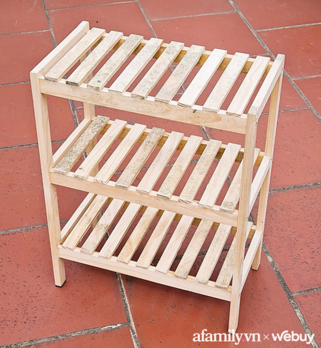 Hội “nghiện decor” hẳn không còn xa lạ gì với em kệ giày gỗ thông xinh xỉu này. Em ý khá khẩm hơn em gương dẻo một chút vì chất liệu gỗ thông khá chắc chắn, kệ có 3 tầng tha hồ đựng đồ. Bọn mình mua em này với giá rất rẻ, chỉ 150K nhưng lúc mới lấy về, bọn mình hơi bực vì lỗ vặn vít bị khoan lệch, phải trầy trật 30 phút để chỉnh lại. Nhưng đó không phải là nhược điểm duy nhất.