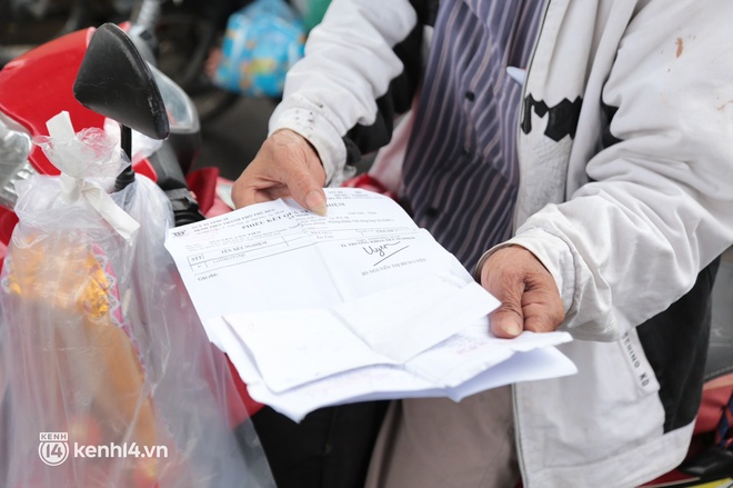 "Vợ tôi mất hơn 1 tháng nay vì Covid-19 và hôm nay nghe Thành phố nới lỏng giãn cách mới có cơ hội mang tro cốt bà ấy về quê nhà nhưng bị chặn lại chỗ này. Tôi và con trai cùng đưa bà ấy về quê chứ mấy tháng nay bị mắc kẹt, cuộc sống khó khăn quá. Vợ tôi mắc Covid-19 và mất khiến hai cha con rất đau buồn, mong ngày Thành phố cho về quê càng sớm càng tốt", ông Tiền chia sẻ